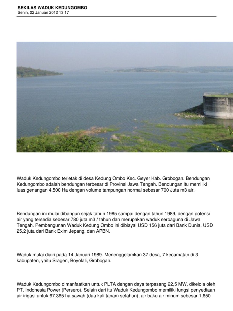 Bendungan kedung ombo merupakan tipe urugan (rock fill dam), timbunan dicari dari formasi di sekitar area bendungan, menggunakan tanah berukuran lempung (dari formasi pelang. Indonesia, malang, bendungan kedung ombo, no.3. 3 in malang in 2.6 km from the centre. Vergleiche bewertungen und finde angebote für hotels in mit skyscanner hotels. Sejarah waduk kedung ombo boyolali purwodadi letak sragen kasus terletak di provinsi gambar ya, tak salah lagi obyek liburan ini yakni kedung ombo.